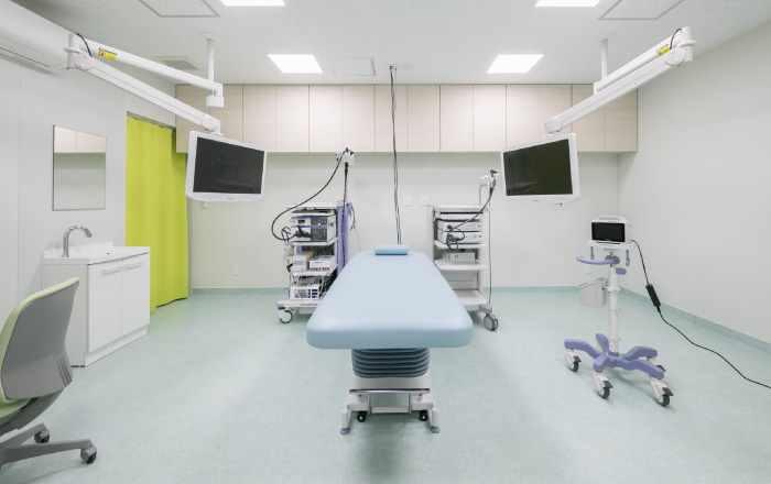 - 内視鏡による安全な検査・治療を行うためにも、十分な広さと清潔さを保った専用の内視鏡検査室を設けました。
